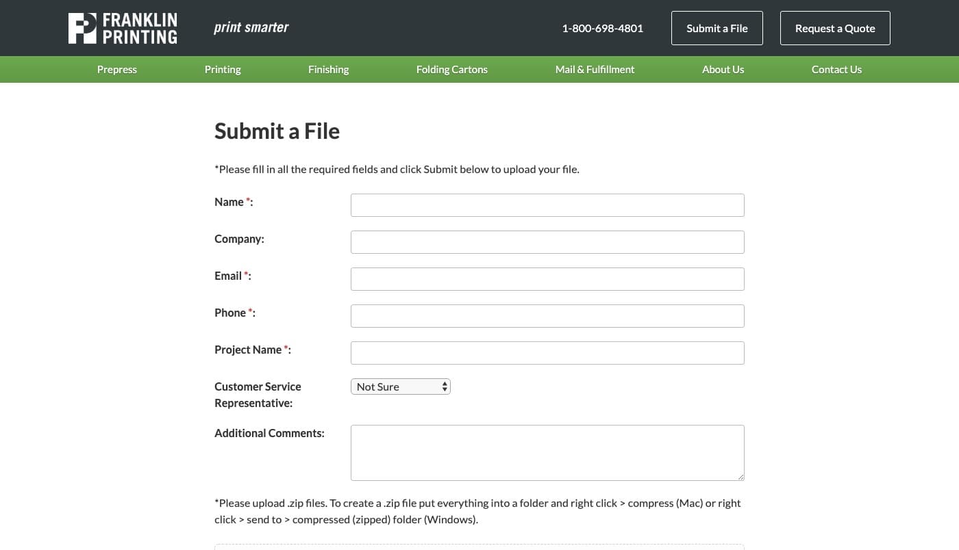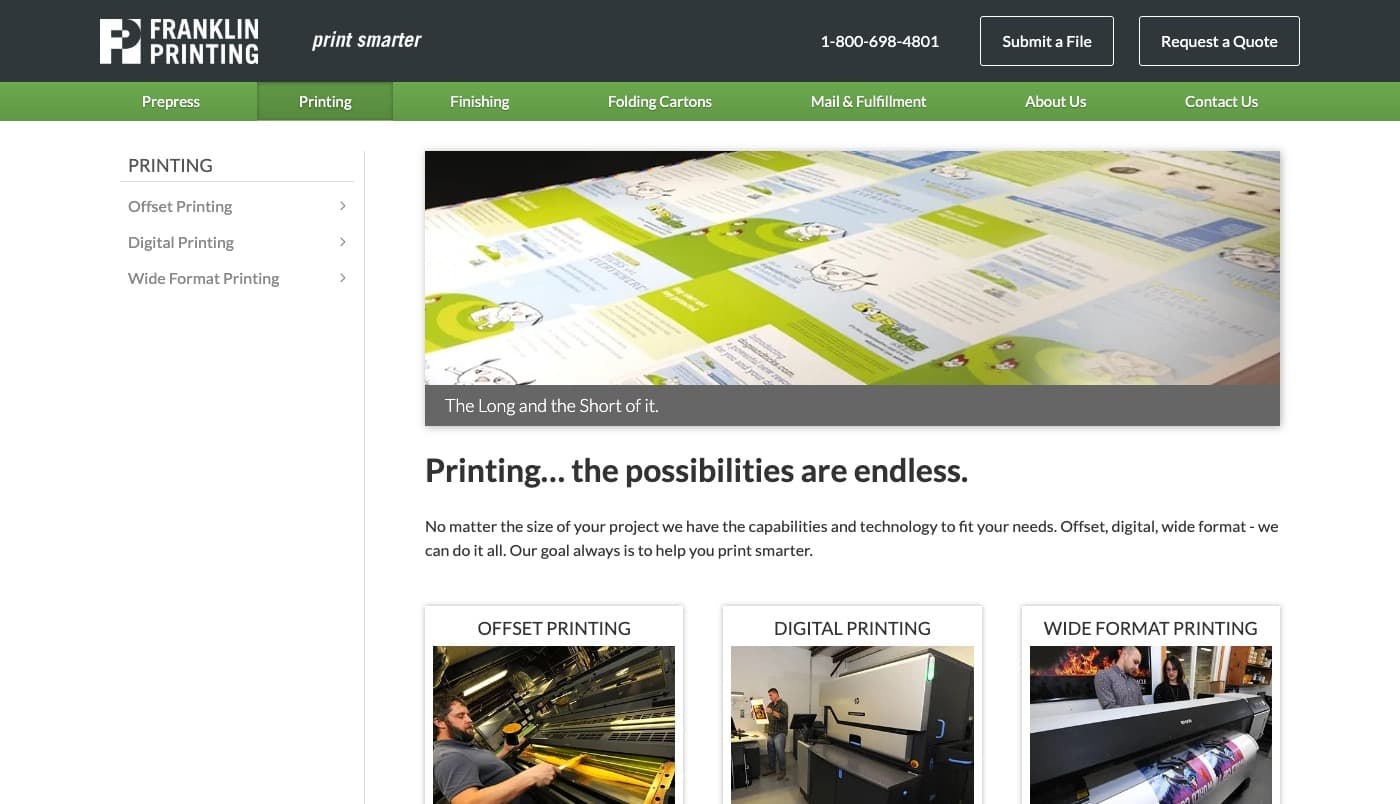 Franklin Printing of Farmington, Maine, came to us to design and build them a new website that would better showcase their services and capabilities. Another goal of the project was to improve the process of clients submitting their design files.