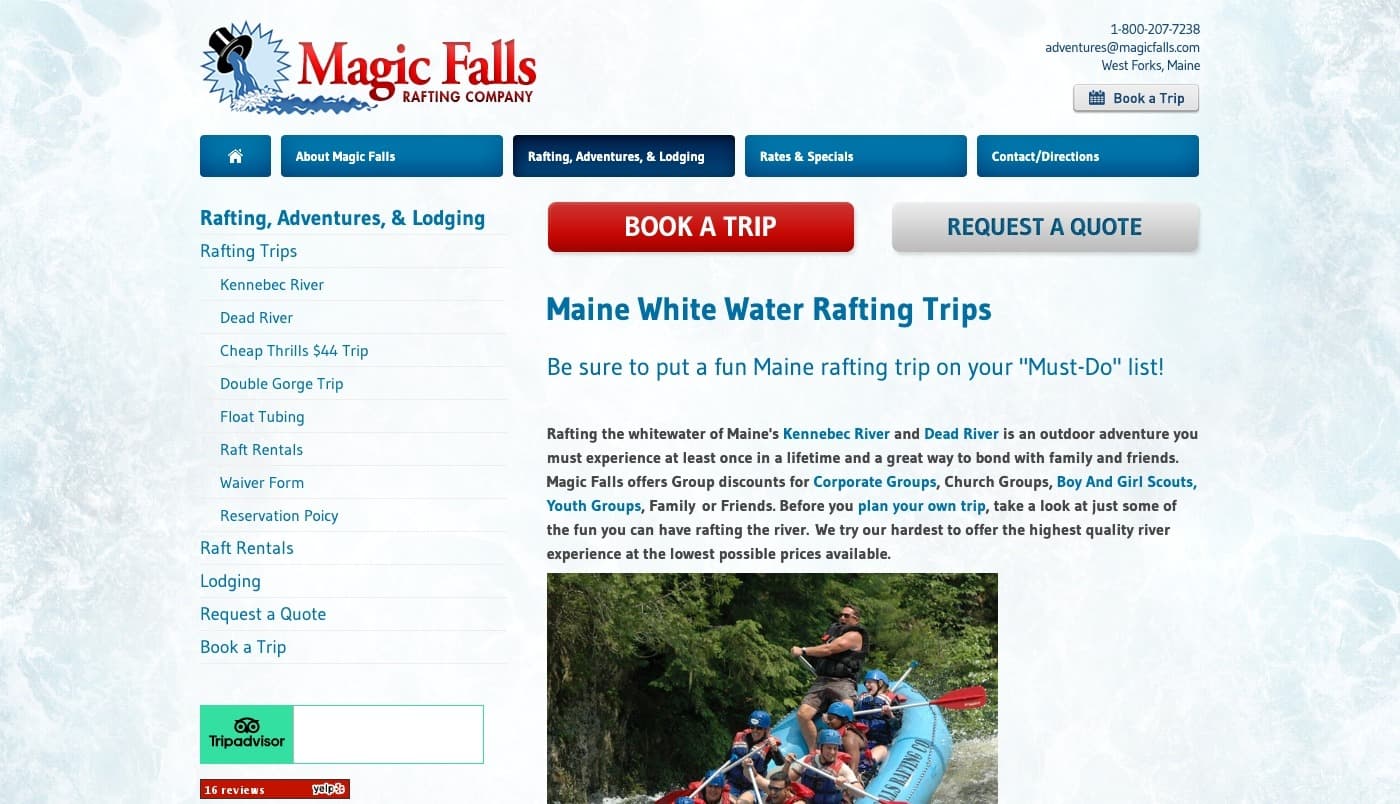 The Magic Falls Rafting Company desperately needed a redesign for their old site. They wanted to bring a cleaner more focused approach to the new website.