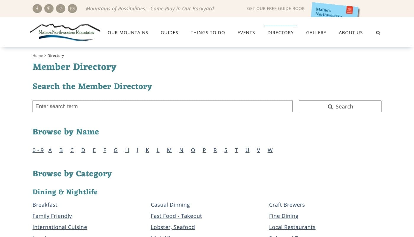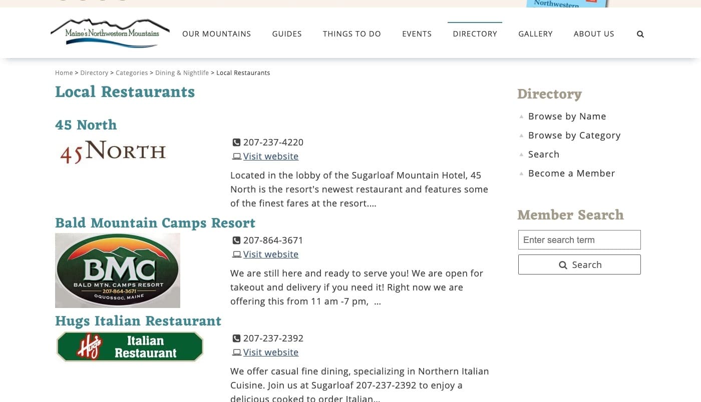 The Flagstaff Area Business Association (FABA) approached us about redesigning their website for the Maine High Peaks region. Their old website was powered by Drupal, but it was cumbersome to edit and to use. It wasn't mobile friendly and a lot of the content was outdated.