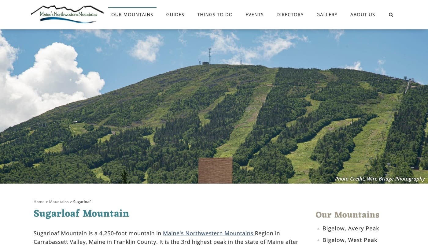 The Flagstaff Area Business Association (FABA) approached us about redesigning their website for the Maine High Peaks region. The goal of the website is to promote the largest mountains in Maine for recreational use, tourism, and education.