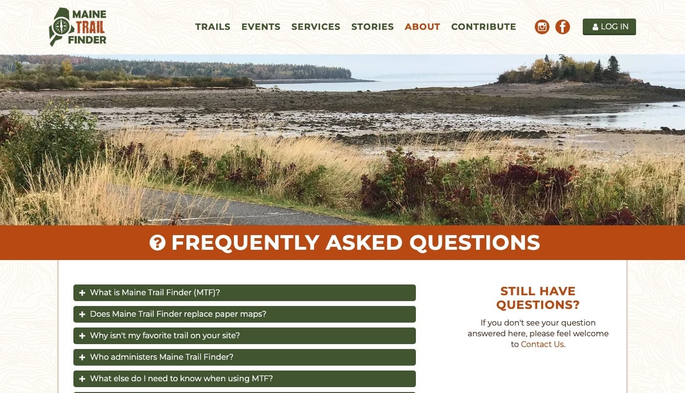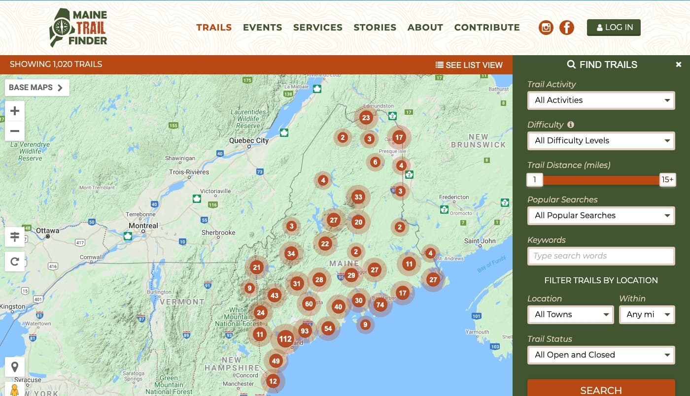 The Maine Trail Finder website is an awesome resource for hiking, walking, skiing, biking, and multi-use trails in Maine. It's run by the folks at Community Geographics. Because they are GIS professionals, all of the trail information on Maine Trail Finder is high quality, which also means that the website is very popular.