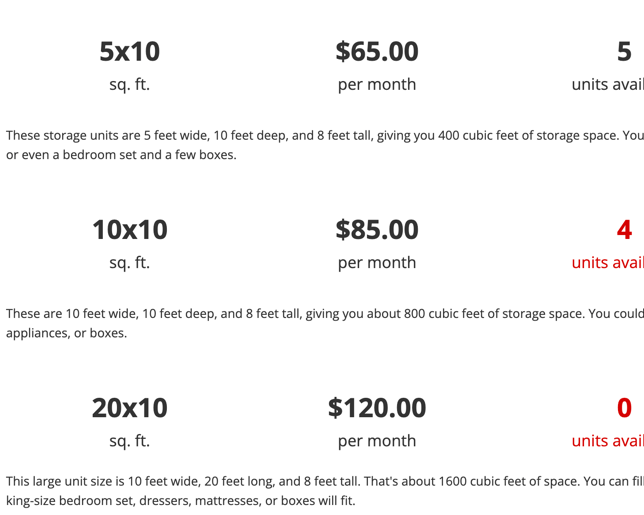 Examples of self-storage websites built on Aptuitiv