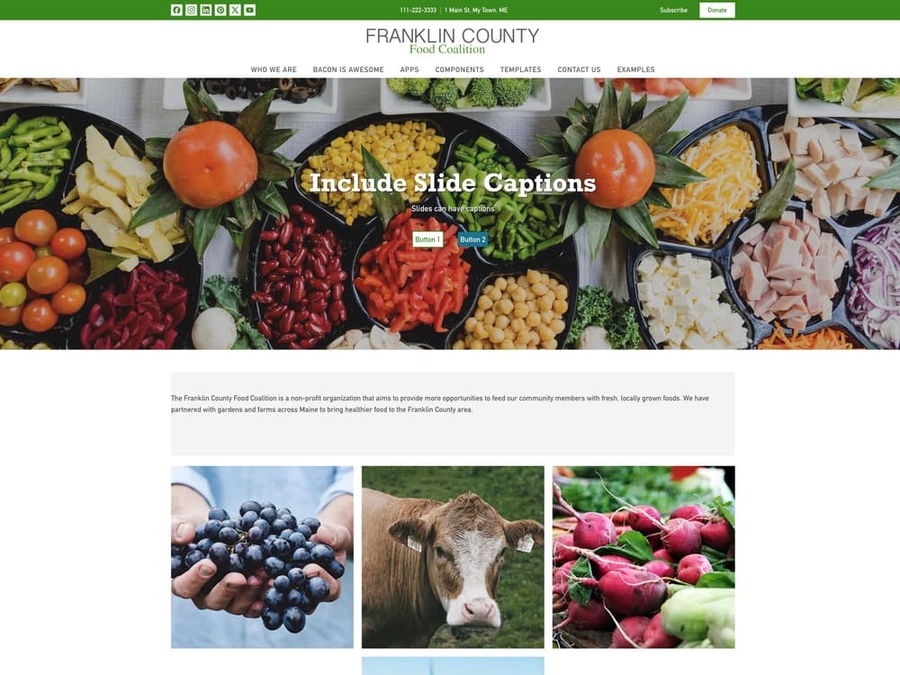 The Carmine theme is our most popular theme. It works for any logo shape, includes contact information and call-to-action buttons in the header, and offers the most room for navigation. It's ideal for websites with more than 4 or 5 navigation links. Because the navigation is on its own line, it has the most room for growth.